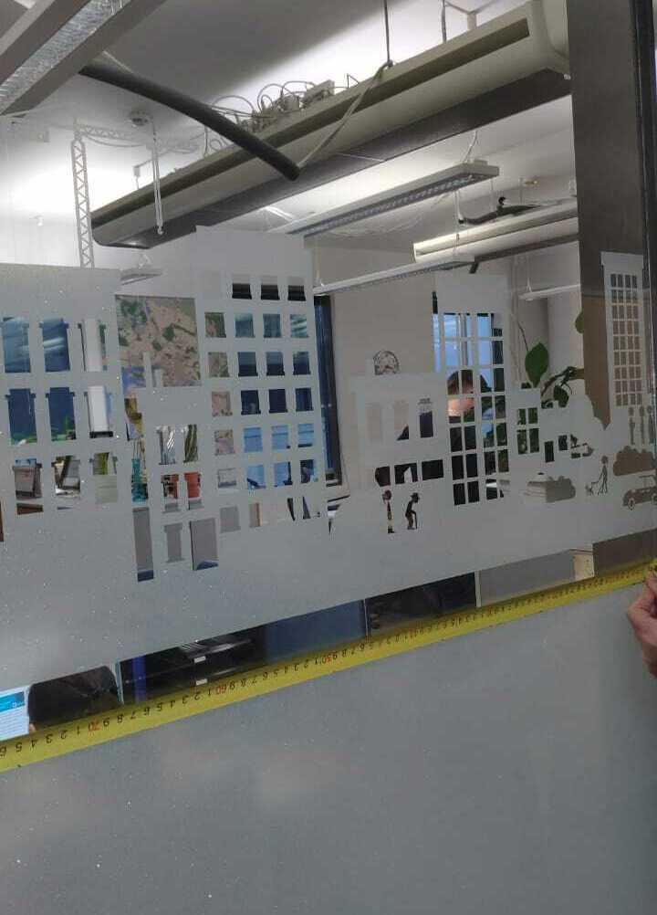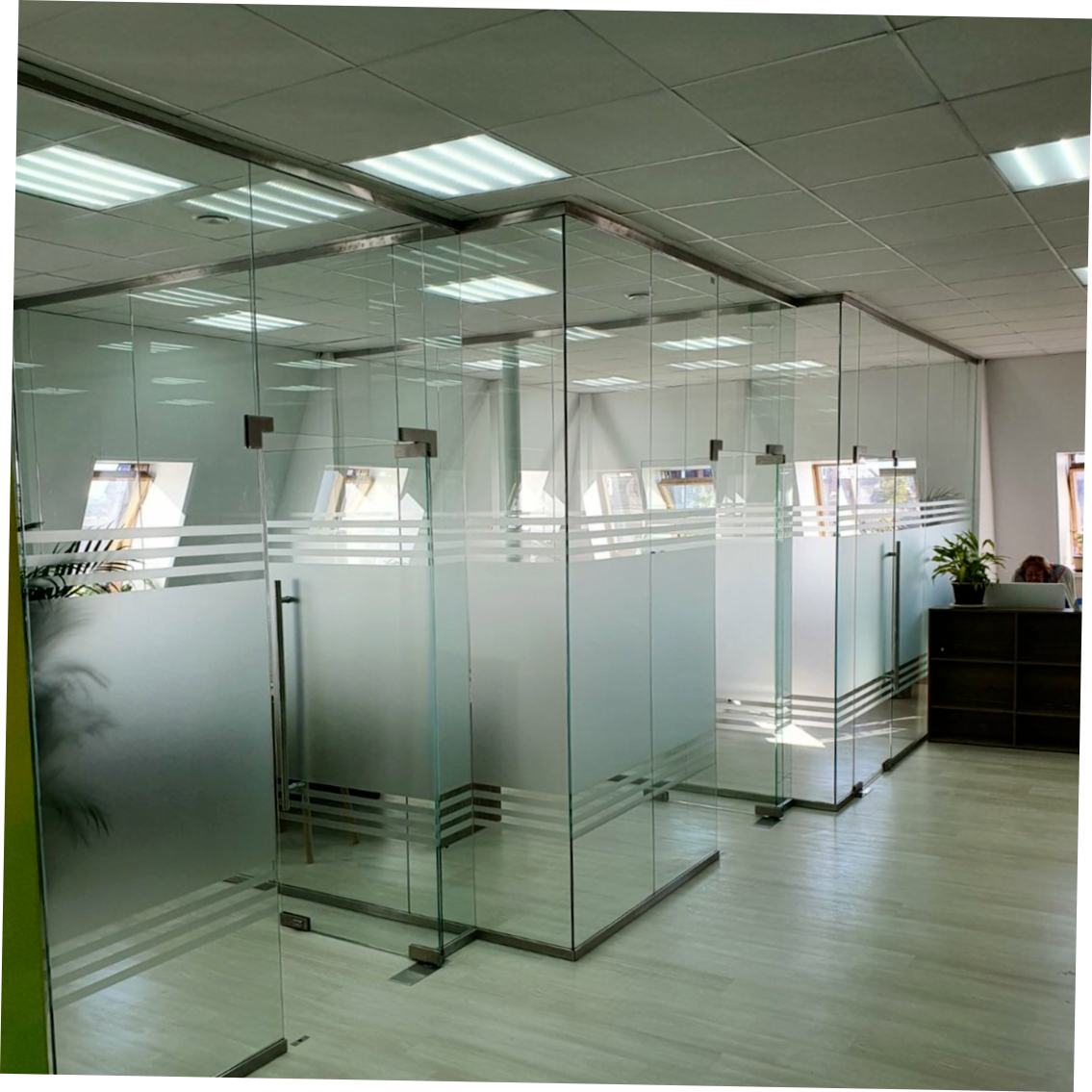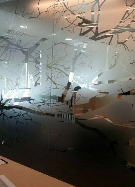 Использовать такую пленку, намного дешевле, чем устанавливать матовые стекла. Придает "изюминку" интерьеру. Основная сфера применения на крупных предприятиях, офисах, в коворкингах.